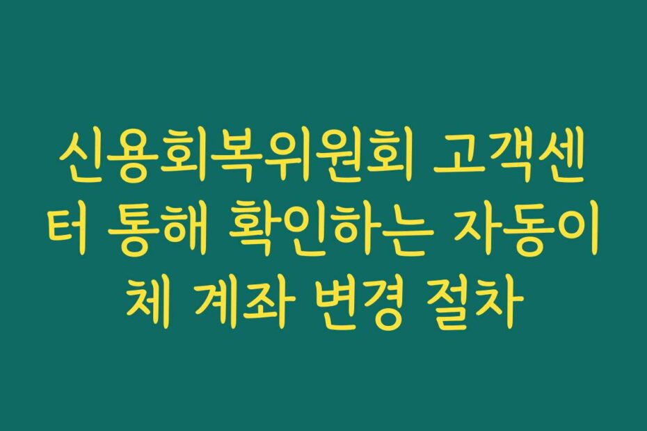 혹시 이런 고민 있으신가요. 2026년 최신 정보로 신용회복위원회 고객센터 통해 확인하는 자동이체 계좌 변경 절차를 알아보겠습니다. 이 글을 통해 모든 과정을 쉽게 이해하고 해결책을 찾을 수 있습니다.