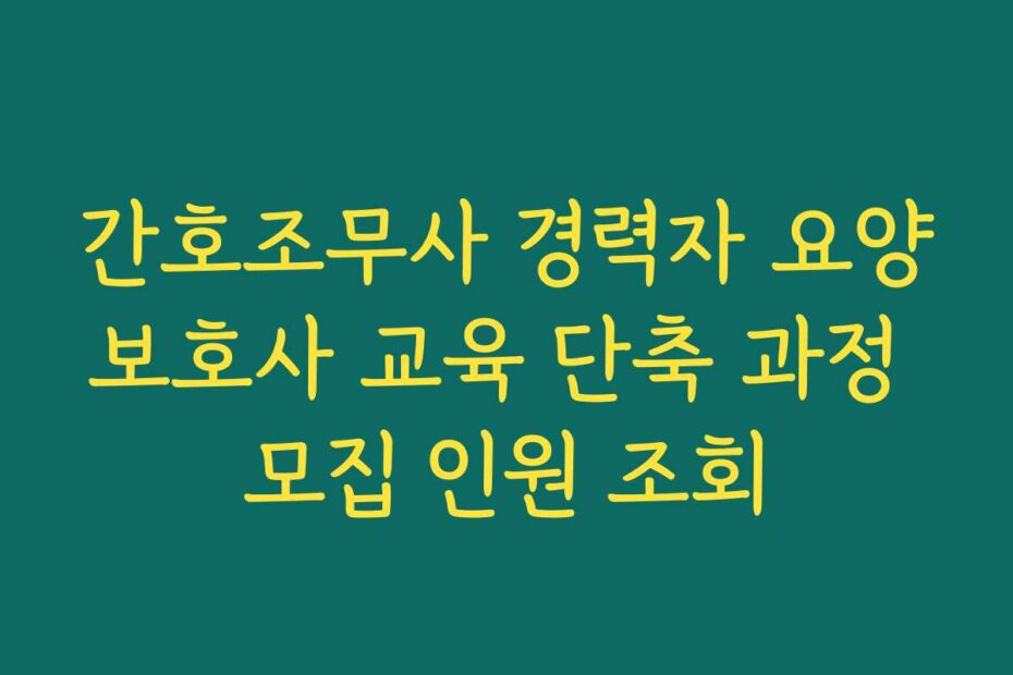 혹시 이런 고민 있으신가요. 2026년 최신 정보로, 간호조무사 경력자 요양보호사 교육 단축 과정 모집 인원 조회에 대한 모든 정보를 제공합니다. 이 글을 통해 필요한 정보를 한 번에 확인하고, 보다 효율적인 교육 과정을 준비해 보세요.