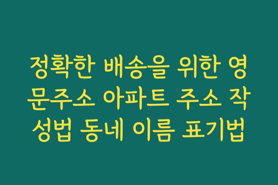 👉✅ 상세 정보 바로 확인 👈 혹시 이런 고민 있으신가요. 정확한 배송을 위한 영문주소 아파트 주소 작성법 동네 이름 표기법에 대한 명확한 이해가 없다면, 배송이 지연되거나 잘못 배송되는 일이 빈번하게 발생할 수 있습니다.