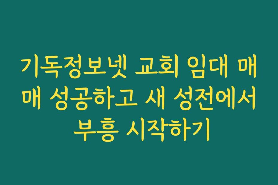 혹시 이런 고민 있으신가요. 2026년 최신 정보로 기독정보넷 교회 임대 매매 성공하고 새 성전에서 부흥 시작하기에 대한 내용을 알아보겠습니다. 이 글을 읽고 나면 모든 고민이 해결될 것입니다.