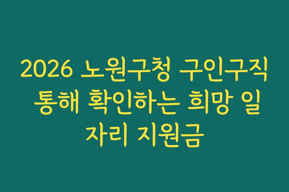 혹시 이런 고민 있으신가요. 2026년 최신 정보로, 2026 노원구청 구인구직 통해 확인하는 희망 일자리 지원금이 여러분의 경력과 미래를 바꿀 수 있는 기회를 제공합니다. 이 글을 통해 효과적으로 지원금을 신청하는 방법을 알아보세요.