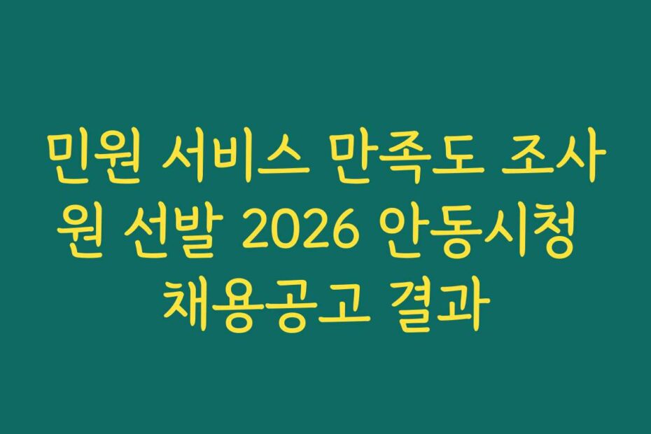 혹시 이런 고민 있으신가요. 2026년 최신 정보에 따르면, 민원 서비스 만족도 조사원 선발 2026 안동시청 채용공고 결과가 발표되었습니다. 이 글을 통해 정확한 정보를 얻고, 성공적인 지원을 위한 모든 과정을 정리해 드리겠습니다.