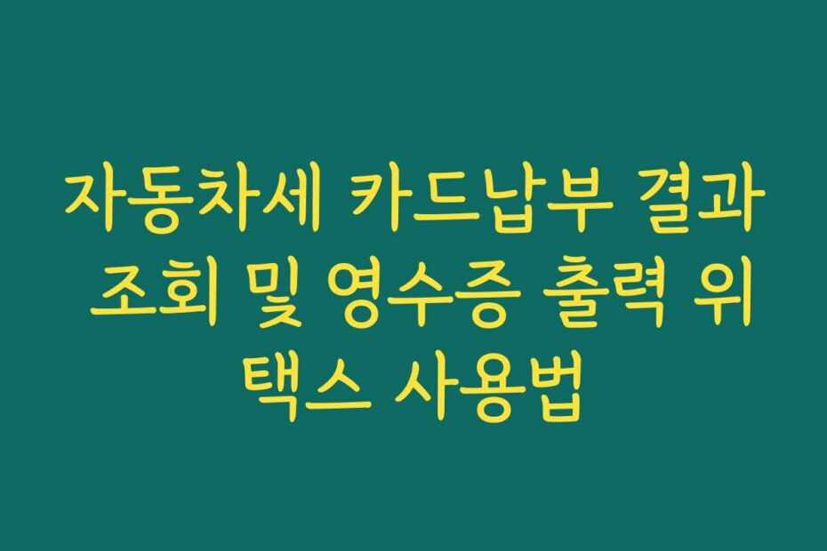 혹시 이런 고민 있으신가요. 자동차세 카드납부 결과 조회 및 영수증 출력 위택스 사용법이 어렵고 복잡하게 느껴지시나요. 2026년 최신 정보로, 간편하게 문제를 해결할 수 있는 방법을 안내해 드리겠습니다.