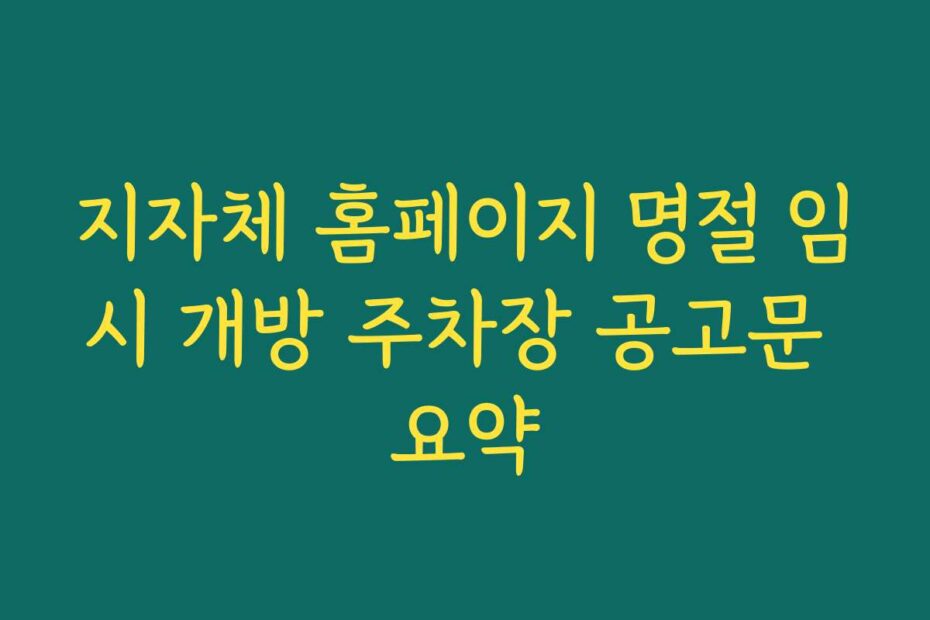 혹시 이런 고민 있으신가요. 많은 분들이 지자체 홈페이지 명절 임시 개방 주차장 공고문 요약을 통해 주차 공간 문제를 해결하고자 합니다. 2026년 최신 정보로, 여러분의 주차 걱정을 덜어줄 정보를 준비했습니다.