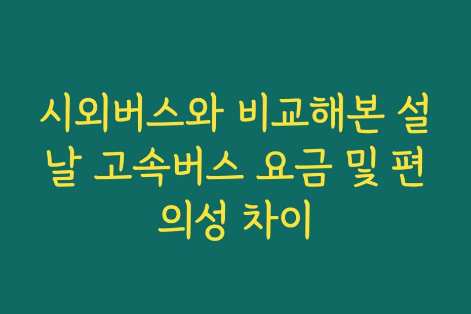 혹시 이런 고민 있으신가요. 2026년 최신 정보에 따르면, 설날 고속버스 요금 및 편의성 차이를 시외버스와 비교해본 경험이 필요합니다. 이 글 하나로 모든 궁금증이 해결될 것입니다.