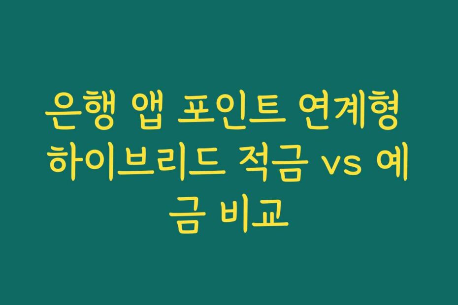 혹시 이런 고민 있으신가요. 2026년 최신 정보로 은행 앱 포인트 연계형 하이브리드 적금 vs 예금 비교에 대해 알아보겠습니다. 이 글을 통해 두 상품의 장단점을 명확하게 이해하고, 나에게 맞는 선택을 할 수 있도록 돕겠습니다.