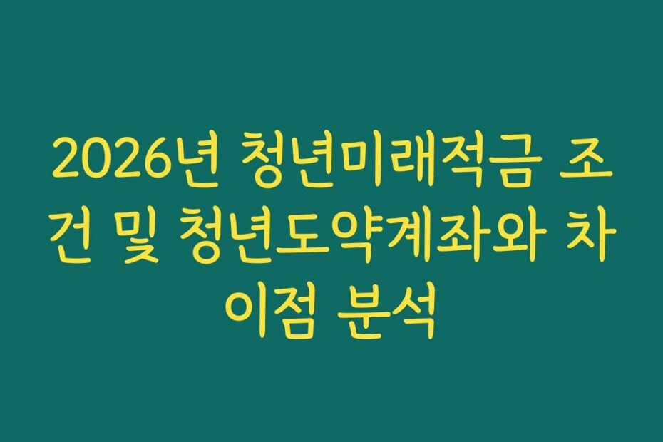 혹시 이런 고민 있으신가요. 2026년 청년미래적금 조건 및 청년도약계좌와 차이점 분석에 대한 정보가 부족해 혼란스러우시죠. 2026년 최신 정보를 통해 여러분의 궁금증을 해결해 드리겠습니다.