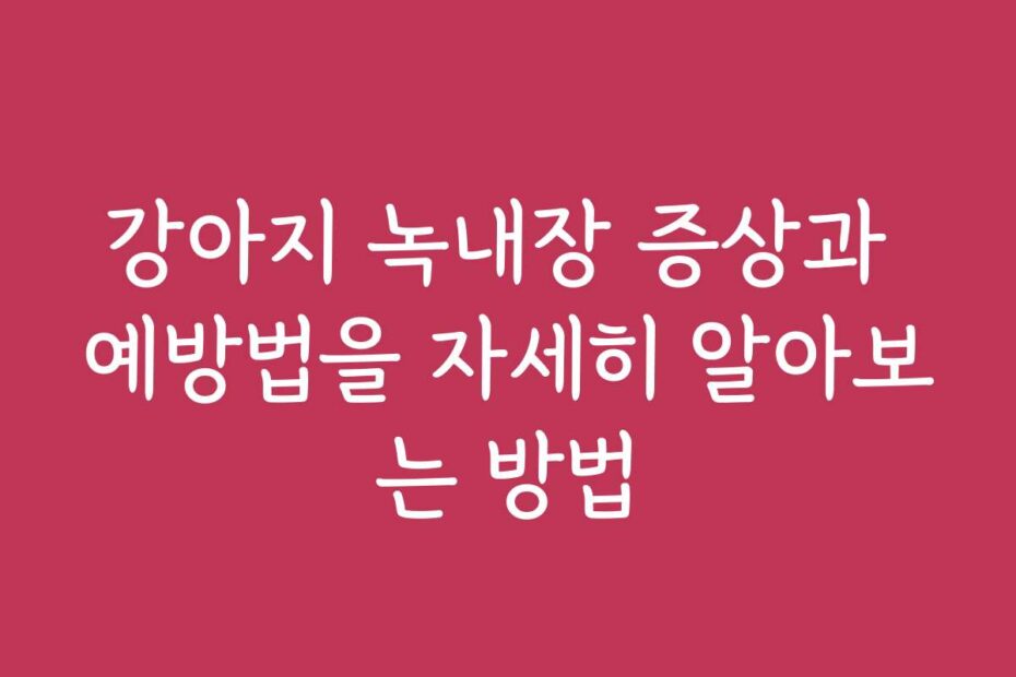 강아지 녹내장 증상과 예방법을 자세히 알아보는 방법와 함께 2026년 최신 정보 완벽 정리 강아지의 눈 건강은 매우 중요한데요, 녹내장은 특히 주의가 필요한 질병입니다.