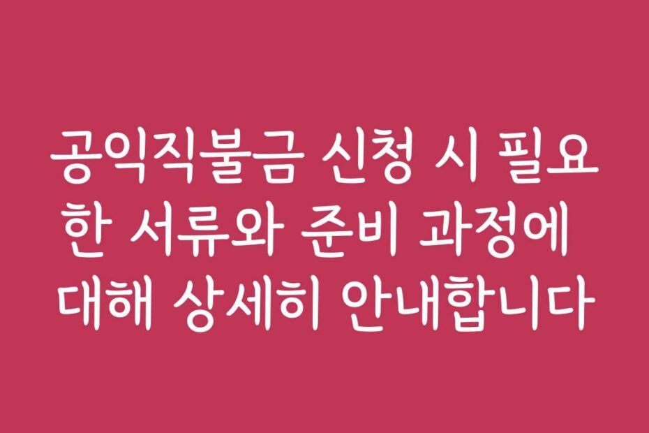 공익직불금 신청 시 필요한 서류와 준비 과정에 대해 상세히 안내합니다. 2026년 기준으로 알려진 최신 정보를 바탕으로, 필요한 서류와 준비 과정에 대한 모든 것을 정리해드릴게요. 이 글을 통해 공익직불금 신청에 대한 궁금증을 해결해보세요.