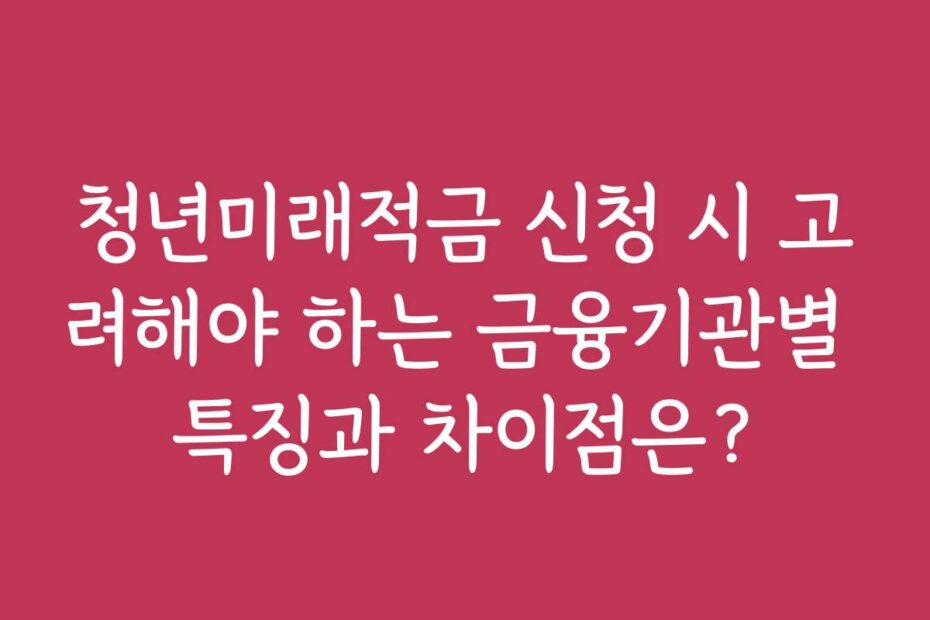 청년미래적금 신청 시 고려해야 하는 금융기관별 특징과 차이점은. 2026년 최신 정보를 통해 청년미래적금의 신청 과정과 금융기관별 차별점을 살펴보겠습니다. 이 글 하나로 모든 궁금증이 해결될 거예요.