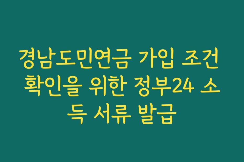 혹시 이런 고민 있으신가요. 경남도민연금 가입 조건 확인을 위한 정부24 소득 서류 발급을 어떻게 해야 할지 막막한 분들이 많습니다. 2026년 최신 정보로, 이 글을 통해 모든 궁금증을 해결해 드립니다.