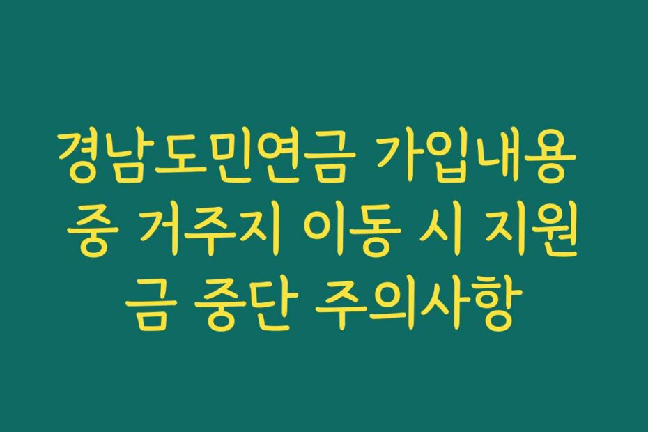혹시 이런 고민 있으신가요. 경남도민연금 가입내용 중 거주지 이동 시 지원금 중단 주의사항에 대해 궁금하다면 이 글을 통해 해결책을 찾아보세요. 2026년 최신 정보로 정확하고 상세한 내용을 제공합니다.