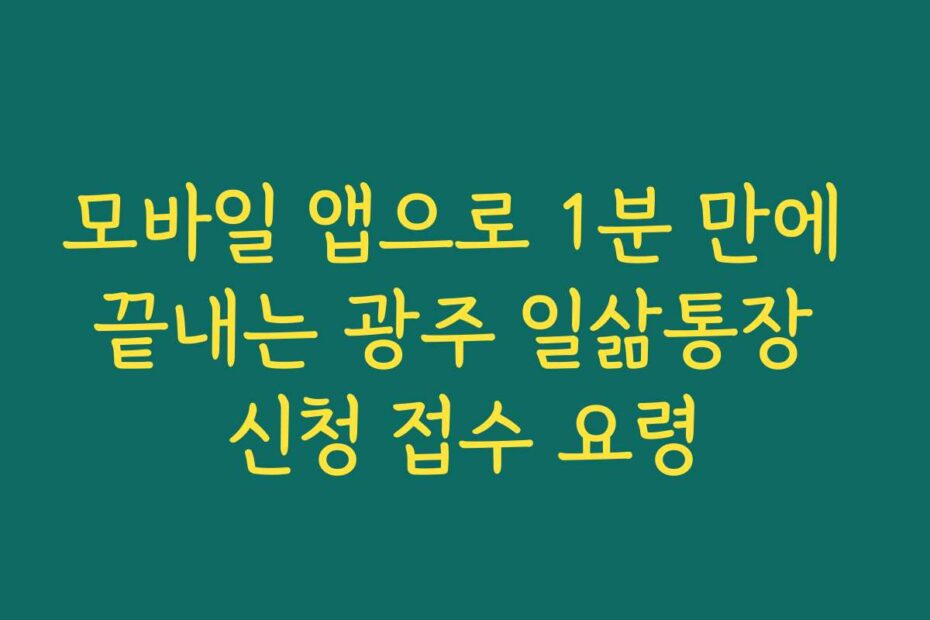 혹시 이런 고민 있으신가요. 2026년 최신 정보로 모바일 앱으로 1분 만에 끝내는 광주 일삶통장 신청 접수 요령을 알려드리겠습니다. 간편한 신청 방법으로 여러분의 소중한 시간을 절약하세요.