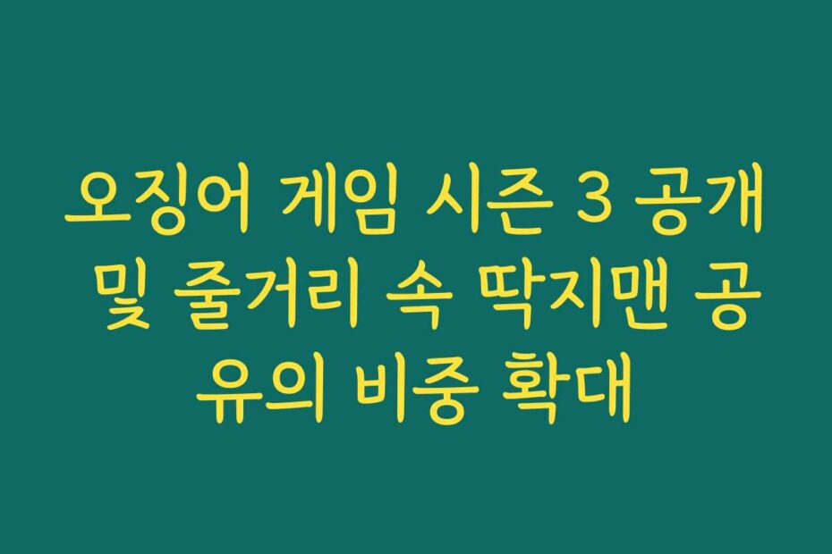 혹시 이런 고민 있으신가요. 2026년 최신 정보로 다가오는 오징어 게임 시즌 3 공개 및 줄거리 속 딱지맨 공유의 비중 확대에 대한 궁금증이 많으실 것 같습니다. 이제 이 글을 통해 모든 정보를 한 번에 해결해 드리겠습니다.