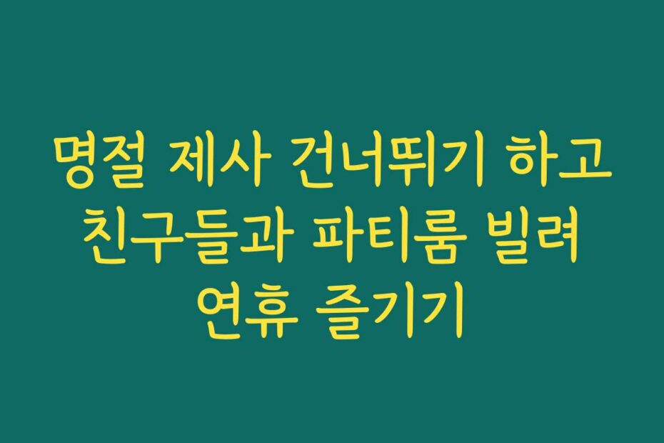혹시 이런 고민 있으신가요. 명절 제사 건너뛰기 하고 친구들과 파티룸 빌려 연휴 즐기기라는 선택이 여러분의 마음을 설레게 하고 있습니다. 2026년 최신 정보로, 즐거운 연휴를 보내는 방법을 소개합니다.